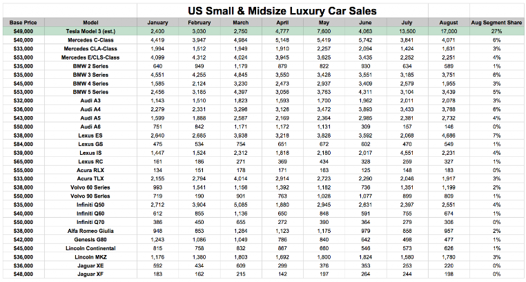 Si tenga in considerazione il prezzo della Model 3, decisamente più elevato rispetto ai modelli degli altri costruttori.