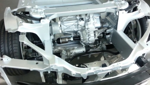 Notare che la batteria di trazione occupa tutto il pianale della vettura.